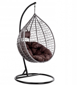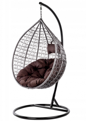 КРІСЛО САДОВЕ ПІДВІСНЕ КОКОН ВЕЛИКИЙ КОШИК СІРИЙ З КРУГЛОЮ КОРИЧНЕВОЮ ОСНОВОЮ ПОДУШКА