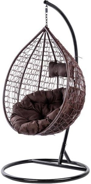 Велике підвісне крісло коричневого кольору з високоякісного техноратанга (імітація натурального лози) забезпечить вам відмінний комфорт і відпочинок вдома, на терасі або в саду. Крісло має міцне металеве сидіння, обтягнуте лозою, що підвищує його міцність, стабілізацію та надає цікавий дизайн. Модель крісла VELACO у вигляді т.зв cocoon унікальний завдяки сучасному та елегантному зовнішньому вигляду, круглій стабільній основі та сталевій рамі з порошковим покриттям. Пластик, з якого виготовлено крісло, стійкий до погодних умов. Велика кругла основа забезпечує максимальну стійкість.