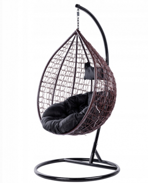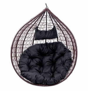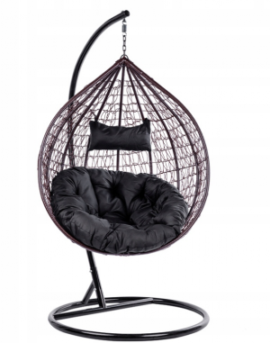 КРІСЛО САДОВЕ ПІДВІСНЕ КОКОН ВЕЛИКИЙ КОШИК ІТАКА КОРИЧНЕВИЙ З ОСНОВОЮ КРУГЛИЙ ЧОРНА ПОДУШКА