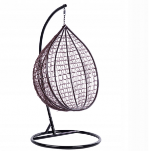 Велике підвісне крісло коричневого кольору з високоякісного техноратанга (імітація натурального лози) забезпечить вам відмінний комфорт і відпочинок вдома, на терасі або в саду. Крісло має міцне металеве сидіння, обтягнуте лозою, що підвищує його міцність, стабілізацію та надає цікавий дизайн. Модель крісла VELACO у вигляді т.зв cocoon унікальний завдяки сучасному та елегантному зовнішньому вигляду, круглій стабільній основі та сталевій рамі з порошковим покриттям. Пластик, з якого виготовлено крісло, стійкий до погодних умов. Велика кругла основа забезпечує максимальну стійкість.