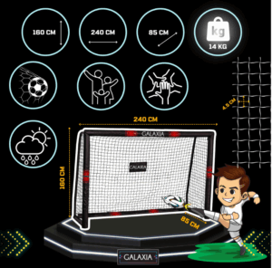 - Для батьків:Батьки, які хочуть підтримати спортивний розвиток своїх дітей, знайдуть ворота GALAXIA ідеальним інструментом для організації домашніх тренувань та розваг на свіжому повітрі.