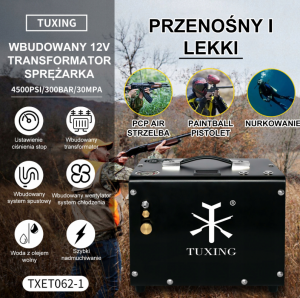 - Наш портативний повітряний компресор PCP розроблено з вбудованим блоком живлення 12 В, системою зливу, системою охолодження вентилятором, загартовуючим клапаном і розривною мембраною, він не потребує масла та води