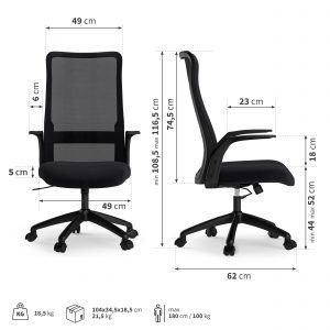 - Спинка: 49×74,5 см, матеріал: сітка, чорний
