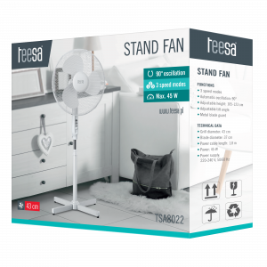 Вентилятор Teesa також означає безпеку завдяки металевій кришці, яка оточує пропелери пристрою. До переваг пристрою можна віднести регулювання висоти і можливість зміни кута нахилу. Спробуйте сьогодні та відчуйте подих прохолодного повітря у спекотні дні!