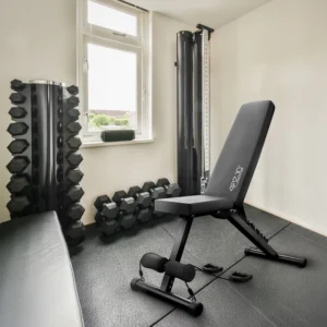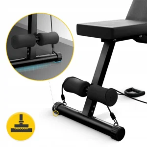 Наша тренувальна лава оснащена спеціальною системою регулювання кута нахилу спинки . Завдяки 7-позиційній шкалі ви можете налаштувати її вертикально, діагонально або горизонтально – ви можете легко налаштувати положення відповідно до своїх уподобань та типу вправи, яку ви виконуєте. Це дозволяє вам комфортно тренуватися незалежно від вашого зросту.