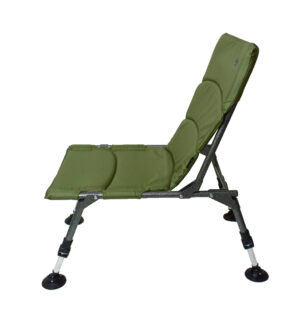 Крісло Novator SF-10 розроблене з урахуванням потреб рибалок. Його низький профіль без підлокітників забезпечує свободу рухів, а регульовані ніжки дозволяють встановлювати крісло на нерівних поверхнях, таких як береги річок чи озер. Водонепроникна тканина зеленого кольору стійка до вологи, що робить крісло ідеальним для використання біля водойм.