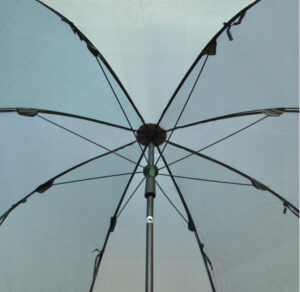 Завдяки водонепроникному матеріалу та ребрам жорсткості, парасолька надзвичайно стійка та міцна . Вона ідеально підходить для нічної риболовлі або під час дощової та вітряної погоди. Використання таких матеріалів гарантує, що парасолька прослужить роками, незалежно від умов на вулиці.