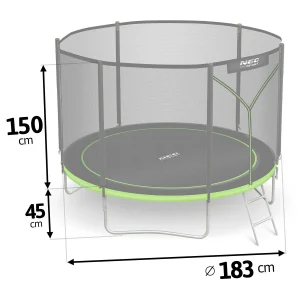 - в комплекті: батут, захисна сітка, металева драбинка, інструкція