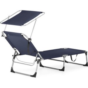 Шезлонг з навісом – ідеальне рішення для сонячних днів, що пропонує приємну тінь під час відпочинку в саду, на пляжі чи біля озера. Регульована спинка дозволяє встановити її під зручним кутом або повністю розкласти, перетворивши на комфортне ліжко для відпочинку. У складеному вигляді займає мало місця, а практичні ручки полегшують транспортування та зберігання. Міцний металевий каркас та стійка до погодних умов тканина гарантують, що шезлонг витримає щоденне використання та навантаження до 120 кг.