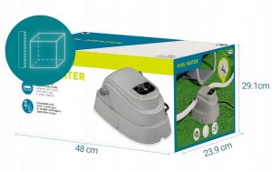 Прилад дуже простий в установці і забезпечить оптимальну температуру води. Представлений водонагрівач дозволить підняти температуру води в басейні від 0,5 до 1,5 ° C / год. Максимальна потужність нагріву 40°C, ідеально підходить для басейнів об’ємом води від 1520 до 17035 літрів.Слід також зазначити, що швидкість нагрівання води залежить від температури і кількості нагрітої води, а також температури навколишнього середовища.