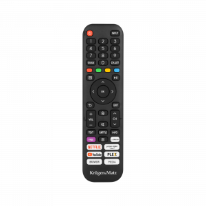 Пульт дистанційного керування, що входить до комплекту поставки телевізора Kruger & Matz, розроблено для зручного та інтуїтивно зрозумілого використання. Пульт дистанційного керування має ярлики для найпопулярніших програм, таких як Netflix, YouTube і Amazon Prime Video. Завдяки їм ви можете швидко запускати свій улюблений контент без необхідності переглядати меню або шукати програми.