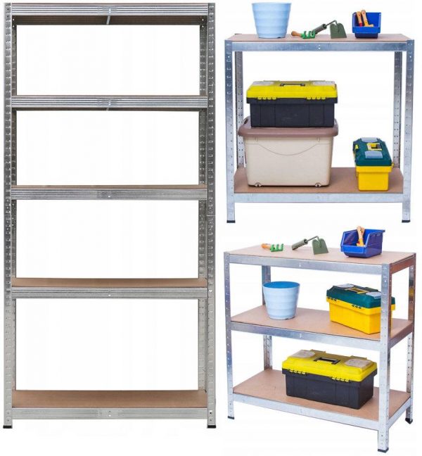 Стелаж Металевий Складський 150x75x30 см складається з 5 полиць , виготовлених з товстої МДФ плити , тому на кожній полиці можна розмістити продукти вагою до 175 кілограм! Посилений сталевий профіль забезпечує відмінну стабільність і безпеку зберігаються речей.