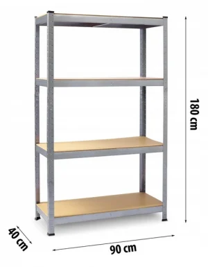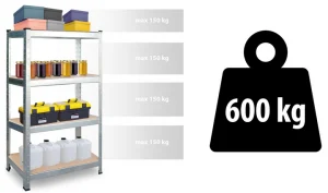 Стелаж складається з 4 полиць, на яких можна розмістити продукти, коробки або пристрої, з максимальним навантаженням до 150 кг на кожну полицю .