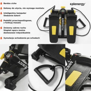 Якщо ви шукаєте тренажер, який спалює калорії та покращує вашу загальну фізичну форму, степер Plenergy X1 – ідеальний вибір. Цей степер імітує рухи підйому сходами, дозволяючи вам тренувати ноги та сідниці. Гумові еспандери, що входять до комплекту, також дозволяють одночасно тренувати руки та плечі.
