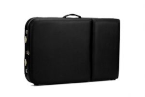 Стіл разом з аксесуарами, які поміщаються всередину , складається у валізу, що закривається на пряжки.
