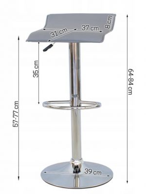 Він регулюється по висоті та має функціональне сидіння, що обертається на 360 градусів. Стійка хромована неслизька основа забезпечує безпечне використання табурета, а практична підставка для ніг забезпечує комфортну підтримку ніг.