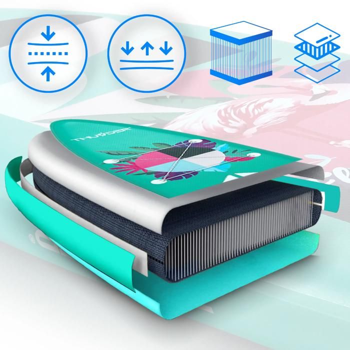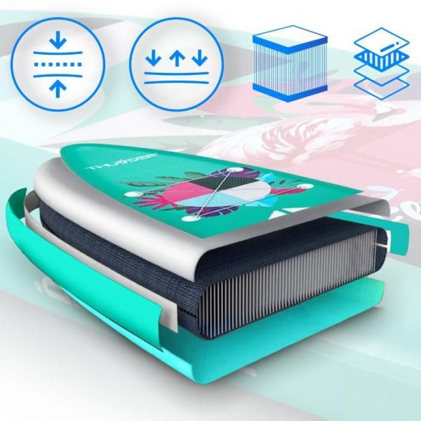 Чудова маневреність завдяки 3 ламлам на нижній частині SUP-дошки ефективно покращує швидкість і керованість, полегшуючи використання та контроль. Широка дошка полегшує утримання рівноваги . Ідеально підходить для багатогодинного плавання на великі відстані.