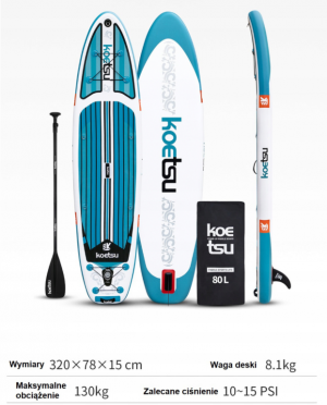 SUP-дошка Koetsu довжиною 320 см — це надувна дошка для веслування, яка ідеально підходить як для початківців, так і для досвідчених користувачів.