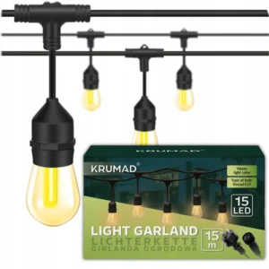 Вулична гірлянда KRUMAD – це ідеальний спосіб освітити ваш сад, терасу чи балкон, додаючи чарівної атмосфери літнім вечорам. Ідеальна прикраса для будь-якої події!