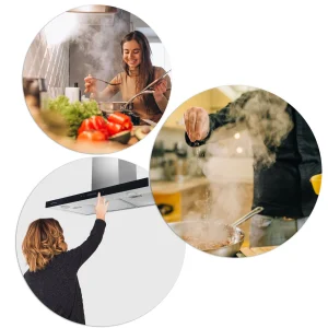 - видаляє пари жиру (завдяки чому жир не осідає на стільницях, фасадах шаф і стиках, не створюючи липкого шару бруду)