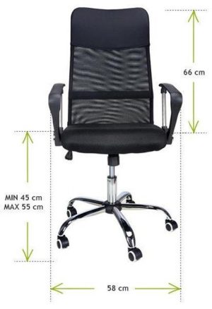 ширина крісла з підлокітниками: 58 см